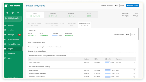 A single platform for complex project management and accounting, so budget tracking, schedules, documents, and billing are all in one place.